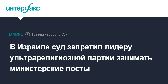 В Израиле суд запретил лидеру ультрарелигиозной партии занимать министерские посты