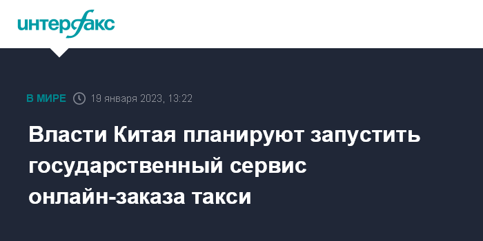 Москва. 19 января. INTERFAX.RU - Власти КНР намерены запустить государственный сервис онлайн-заказа такси, нацеленный в первую очередь на членов Компартии и сотрудников госорганизаций. Об этом пишет газета Financial Times со ссылкой на сообщения в китайских СМИ.