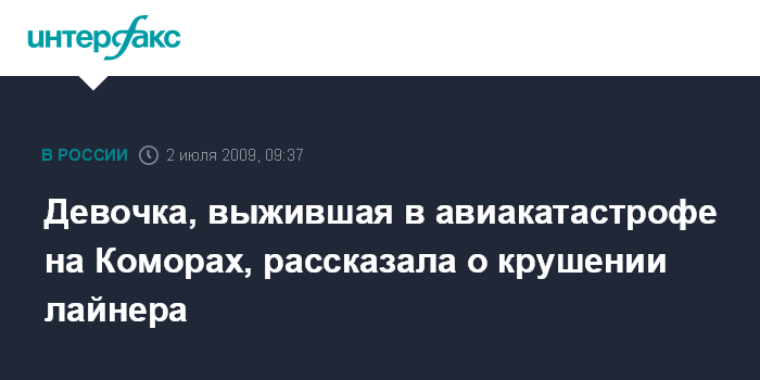 Девочка, выжившая в авиакатастрофе на Коморах, рассказала о крушении лайнера