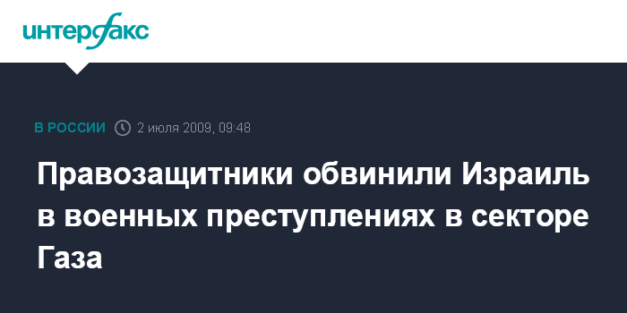 Москва. 2 июля. INTERFAX.RU - Израильские войска виновны в совершении военных преступлений в ходе безрассудных атак и бессмысленных разрушений во время военной операции против палестинской группировки ХАМАС в начале года, сообщает британская телерадиокорпорация BBC со ссылкой на доклад международной правозащитной организации "Международная амнистия".