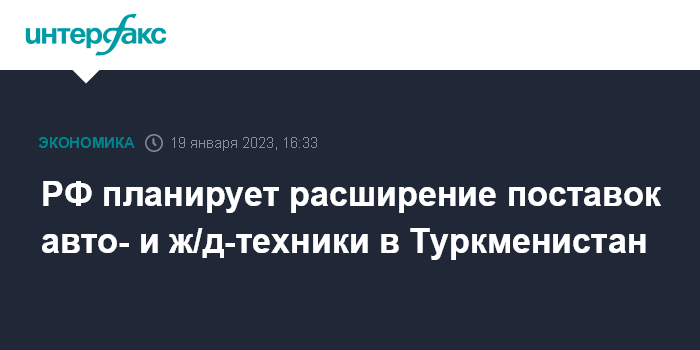 РФ планирует расширение поставок авто- и ж/д-техники в Туркменистан