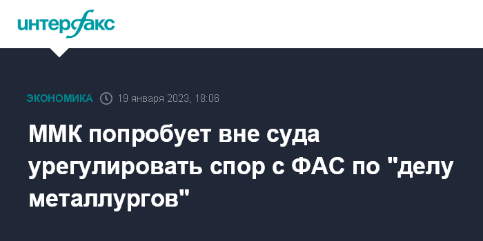 ММК попробует вне суда урегулировать спор с ФАС по "делу металлургов"