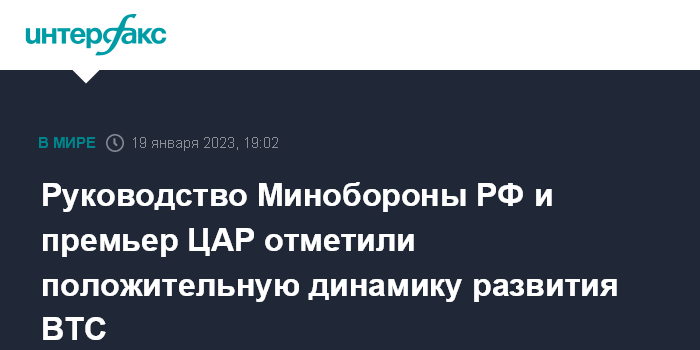 Руководство Минобороны РФ и премьер ЦАР отметили положительную динамику развития ВТС