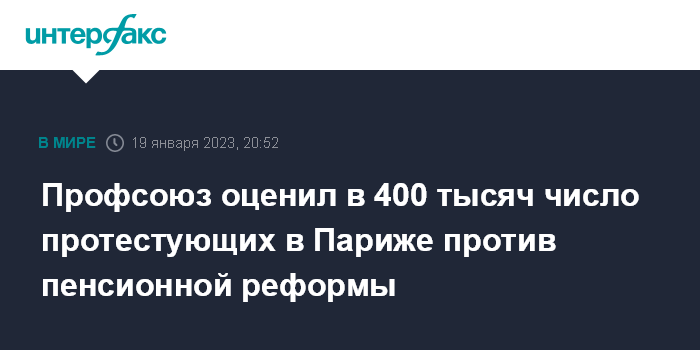 Профсоюз оценил в 400 тысяч число протестующих в Париже против пенсионной реформы