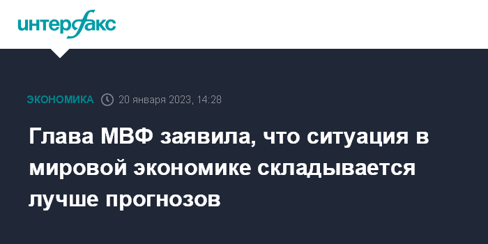 Москва. 20 января. INTERFAX.RU - Мировая экономика чувствует себя не настолько плохо, как ожидалось несколько месяцев назад, но это не означает, что она находится в хорошем состоянии, заявила директор-распорядитель Международного валютного фонда (МВФ) Кристалина Георгиева в ходе выступления на Всемирном экономическом форуме в Давосе.