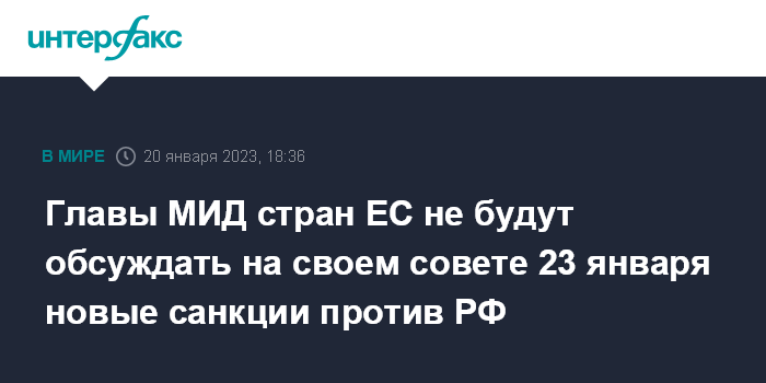 Главы МИД стран ЕС не будут обсуждать на своем совете 23 января новые санкции против РФ