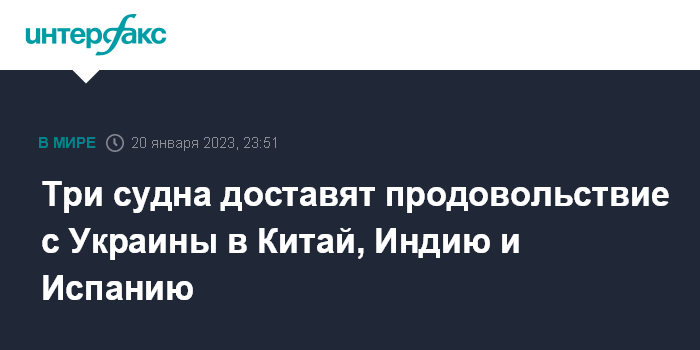 Три судна доставят продовольствие с Украины в Китай, Индию и Испанию