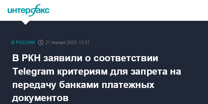 В РКН заявили о соответствии Telegram критериям для запрета на передачу банками платежных документов