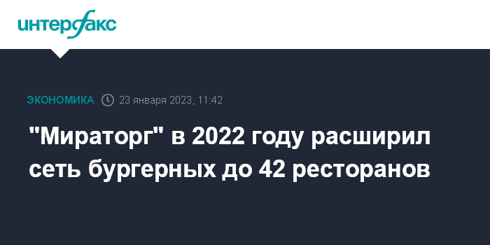 "Мираторг" в 2022 году расширил сеть бургерных до 42 ресторанов