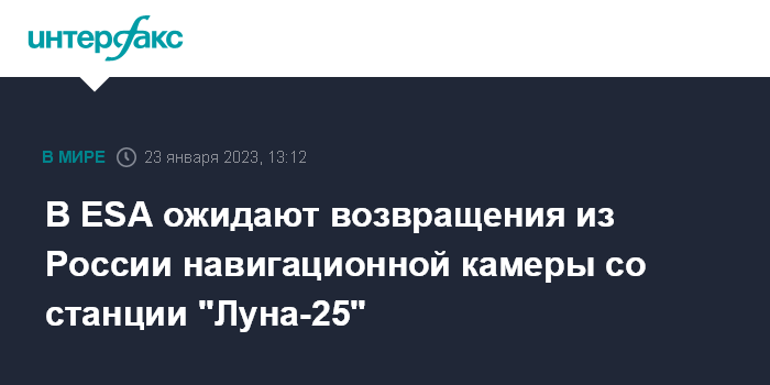"Она (камера) была снята с посадочного модуля "Луны-25". Её возвращение в Европу сейчас планируется", - сказал Паркер на пресс-конференции, отвечая на вопрос "Интерфакса".