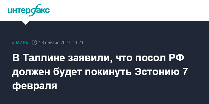 В Таллине заявили, что посол РФ должен будет покинуть Эстонию 7 февраля