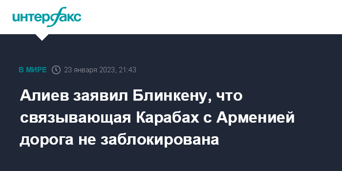 Алиев заявил Блинкену, что связывающая Карабах с Арменией дорога не заблокирована