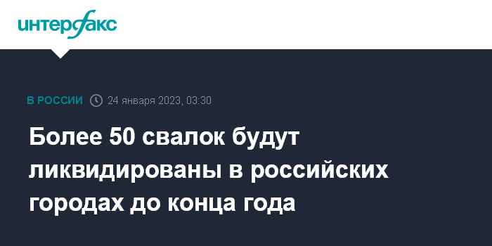 "В рамках федерального проекта "Чистая страна" мы уже разобрались с 58 свалками в границах городов и 74 наиболее опасными объектами накопленного вреда. До конца 2023 года планируем избавиться еще от 53 свалок и четырех наиболее опасных объектов. Итого мы ликвидируем 58% несанкционированных свалок в черте российских городов и 89% опасных объектов накопленного вреда, отраженных в проекте", - сообщил Козлов.