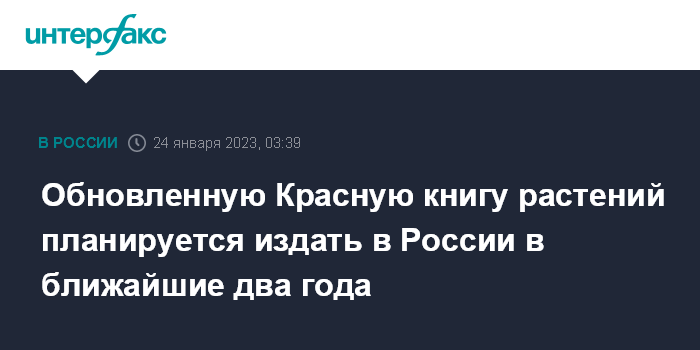 Москва. 24 января. INTERFAX.RU - Издание обновленной Красной книги растений и грибов намечено на 2023-2024 годы, перечень не корректировался 18 лет, сообщил министр природных ресурсов и экологии РФ Александр Козлов.