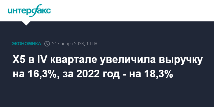 Х5 в IV квартале увеличила выручку на 16,3%, за 2022 год - на 18,3%