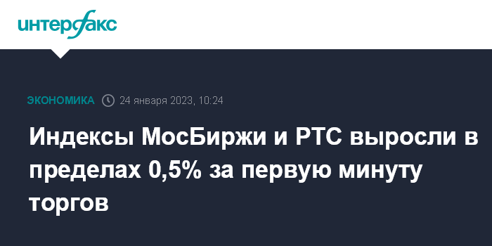 Индексы МосБиржи и РТС выросли в пределах 0,5% за первую минуту торгов