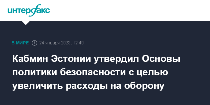 Москва. 24 января. INTERFAX.RU - Правительство Эстонии утвердило и направило для дальнейшего рассмотрения в парламент Основы политики безопасности.