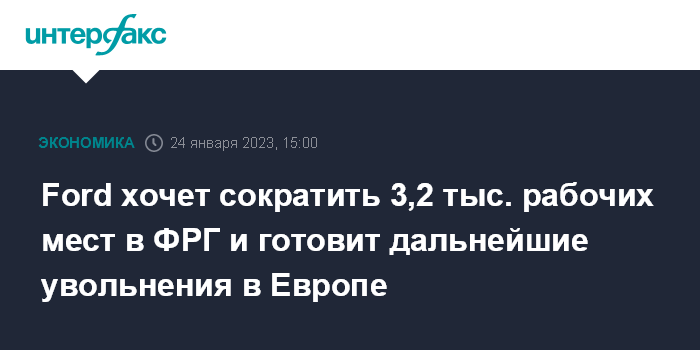 IG Metall, представляющий более 2,2 млн работников автомобильной, электротехнической и металлургической отраслей, сообщил, что Ford намерен сократить до 3,2 тыс. рабочих мест в Германии и готовит дальнейшие увольнения по всей Европе.