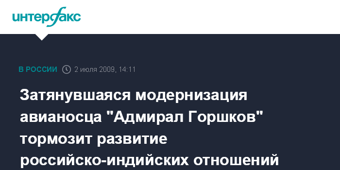 Затянувшаяся модернизация авианосца "Адмирал Горшков" тормозит развитие российско-индийских отношений