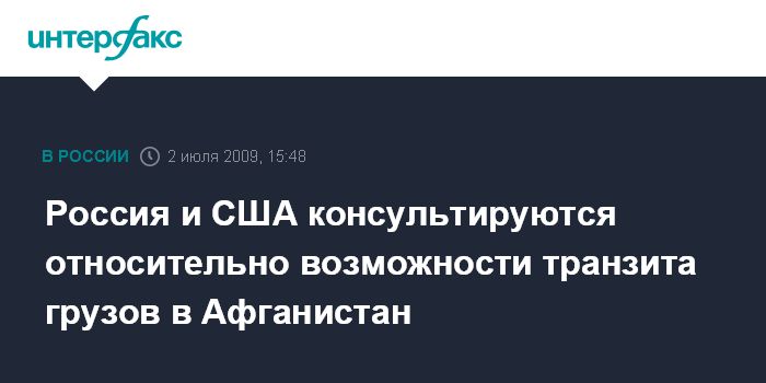Москва. 2 июля. INTERFAX.RU - Россия и США ведут консультации о возможности взаимодействия по транзиту грузов в Афганистан, заявил официальный представитель МИД РФ Андрей Нестеренко на брифинге в Москве.