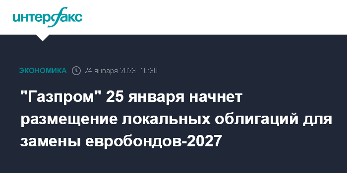 "Газпром" 25 января начнет размещение локальных облигаций для замены евробондов-2027
