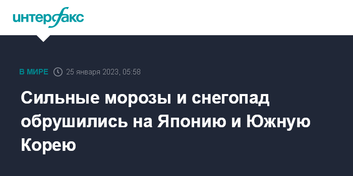 Между тем, соседняя Южная Корея также страдает от сильных холодов. Как сообщают местные СМИ, в среду по всей стране выпущены предупреждения о сильных морозах.