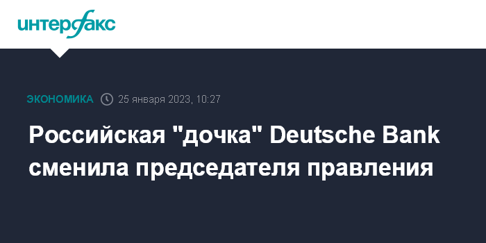 Москва. 25 января. INTERFAX.RU - Российская "дочка" Deutsche Bank сменила председателя правления, свидетельствуют данные ЕГРЮЛ.