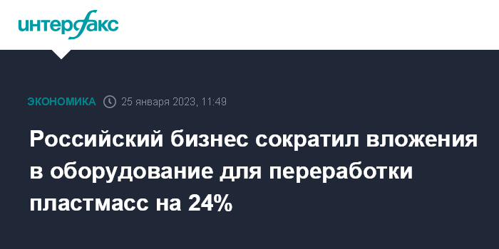 Российский бизнес сократил вложения в оборудование для переработки пластмасс на 24%