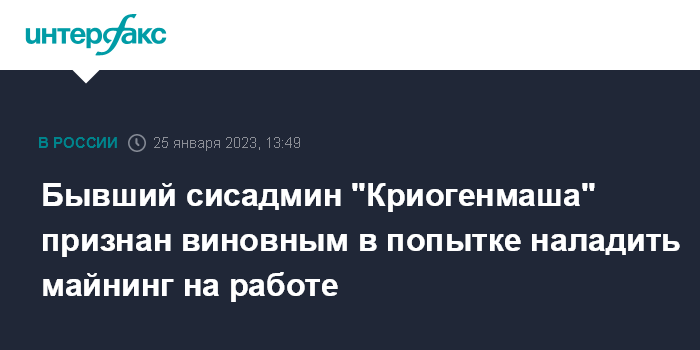 Бывший сисадмин "Криогенмаша" признан виновным в попытке наладить майнинг на работе