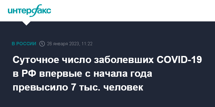 Москва. 26 января. INTERFAX.RU - Суточный прирост новых заболевших коронавирусной инфекцией в РФ составил более 7 тыс. случаев, скончались 40 пациентов с COVID-19, следует из данных оперативного штаба, обнародованных в четверг.