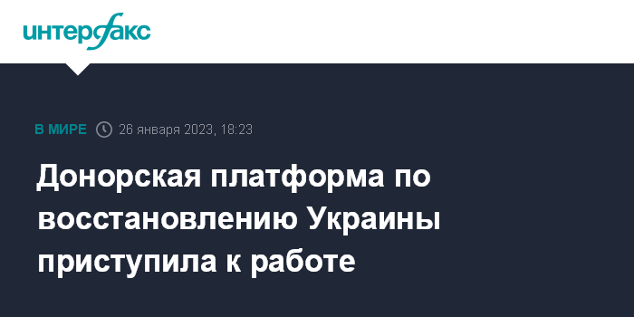 Москва. 26 января. INTERFAX.RU - Европейская комиссия объявила в четверг о начале работы межведомственной донорской координационной платформы для поддержки процесса восстановления Украины.