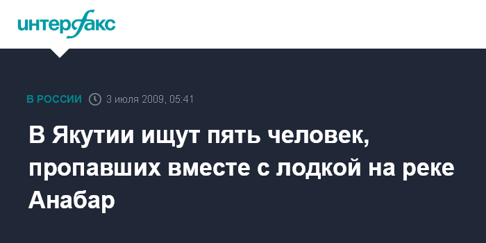 Владивосток. 3 июля. ИНТЕРФАКС-ДАЛЬНИЙ ВОСТОК - В Якутии спасатели организовали поиски пяти человек, которые отправились на лодке по реке Анабар из одного поселка в другой и в назначенное время в пункт назначения не прибыли.