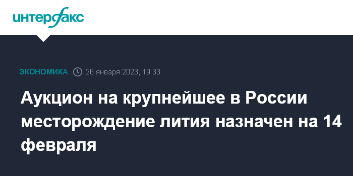 Аукцион на крупнейшее в России месторождение лития назначен на 14 февраля