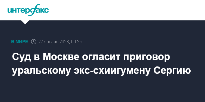 Суд в Москве огласит приговор уральскому экс-схиигумену Сергию