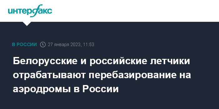 Москва. 27 января. INTERFAX.RU - В ходе продолжающегося в Белоруссии совместного летно-тактического учения белорусские и российские авиаподразделения отрабатывают перебазирование на оперативные аэродромы в России, сообщило белорусское Минобороны.