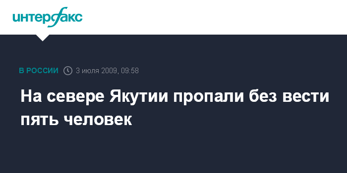 Москва. 3 июля. INTERFAX.RU - В Анабарском районе Якутии, расположенном на побережье Ледовитого океана, организованы поиски пяти местных жителей, пропавших без вести на реке Анабар.