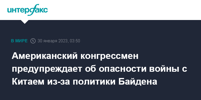 Москва. 30 января. INTERFAX.RU - При президенте Джо Байдене риск вооруженного конфликта с Китаем очень высок, считает член палаты представителей Конгресса США Майкл Маккол.