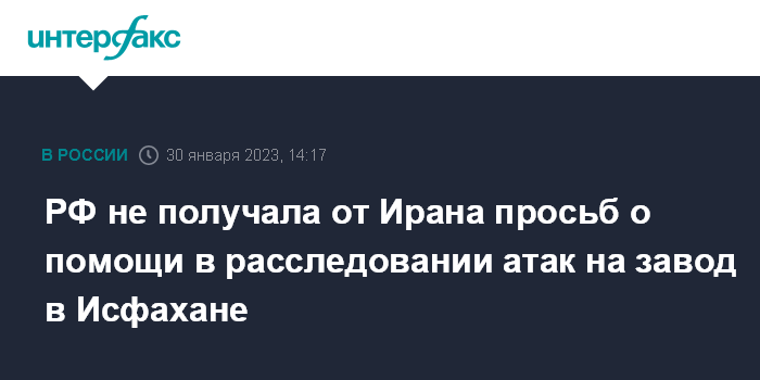 Москва. 30 января. INTERFAX.RU - Тегеран не обращался к Москве с просьбами о содействии в расследовании атак БПЛА на военный завод в иранском городе Исфахан, заявил в понедельник замглавы МИД РФ Андрей Руденко.