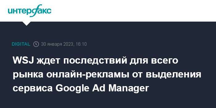 WSJ ждет последствий для всего рынка онлайн-рекламы от выделения сервиса Google Ad Manager