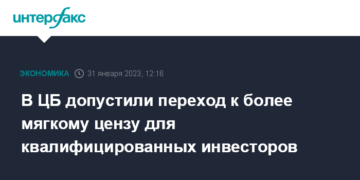 Москва. 31 января. INTERFAX.RU - Банк России может выбрать более мягкий вариант повышения имущественного ценза для признания инвестора квалифицированным.