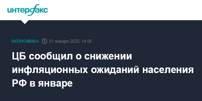 ЦБ сообщил о снижении инфляционных ожиданий населения РФ в январе