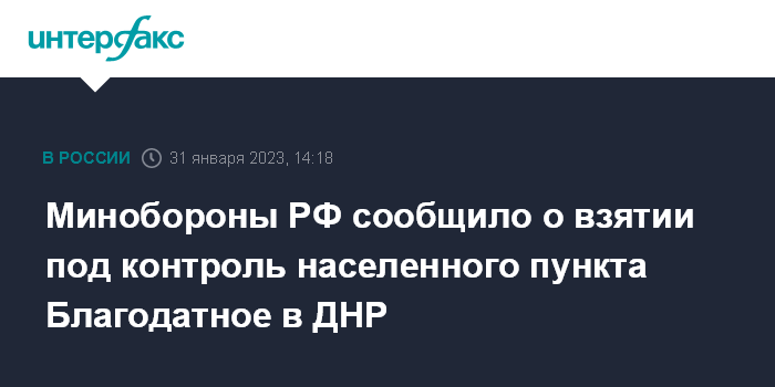 Москва. 31 января. INTERFAX.RU - Российские военные сообщили, что взяли под контроль населенный пункт Благодатное в Донецкой народной республике.