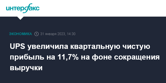 Москва. 31 января. INTERFAX.RU - В IV квартале 2022 года крупнейшая в мире служба экспресс-доставки United Parcel Service увеличила чистую прибыль, однако снижение выручки оказалось неприятным сюрпризом для аналитиков.