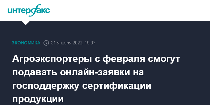 Агроэкспортеры с февраля смогут подавать онлайн-заявки на господдержку сертификации продукции