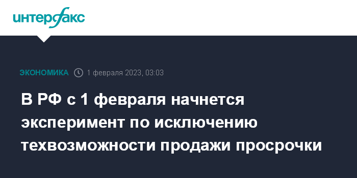 Москва. 1 февраля. INTERFAX.RU - РФ с 1 февраля начинает эксперимент по внедрению системы, исключающей техническую возможность продажи просроченной продукции, а также незаконно введенной в оборот табачной и никотинсодержащей продукции. Соответствующее постановление подписал премьер-министр Михаил Мишустин.