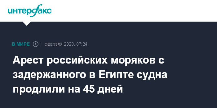 Арест российских моряков с задержанного в Египте судна продлили на 45 дней