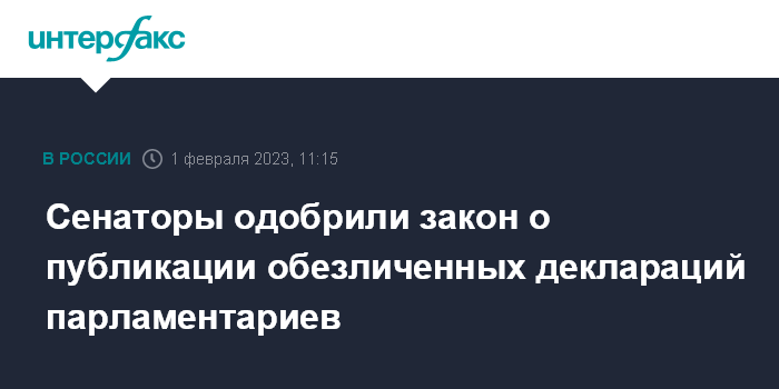 Москва. 1 февраля. INTERFAX.RU - овет Федерации проголосовал за одобрение закона, предусматривающего, что декларации о доходах депутатов и сенаторов теперь будут публиковаться в обобщенном виде и без указания персональных данных.