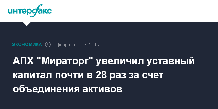 АПХ "Мираторг" увеличил уставный капитал почти в 28 раз за счет объединения активов