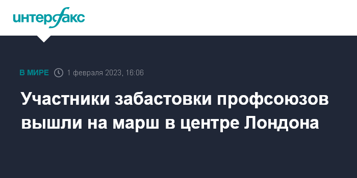 Москва. 1 февраля. INTERFAX.RU - Участники массовой забастовки в Великобритании, выступающие за увеличение заработной платы, начали марш в центре Лондона, передает телеканал Sky News.