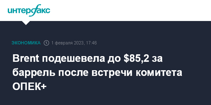 Brent подешевела до $85,2 за баррель после встречи комитета ОПЕК+